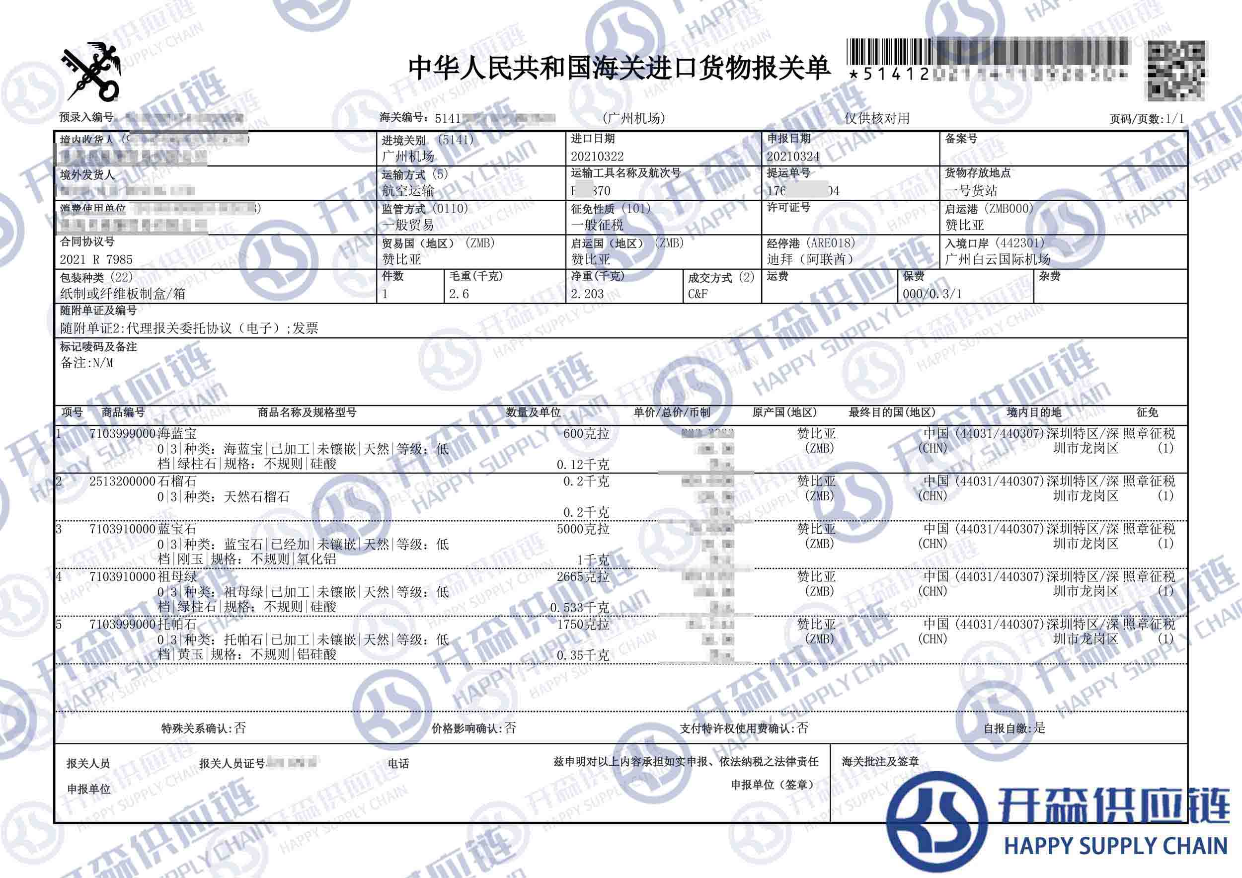 一、贊比亞寶石進口報關(guān)代理案例詳情