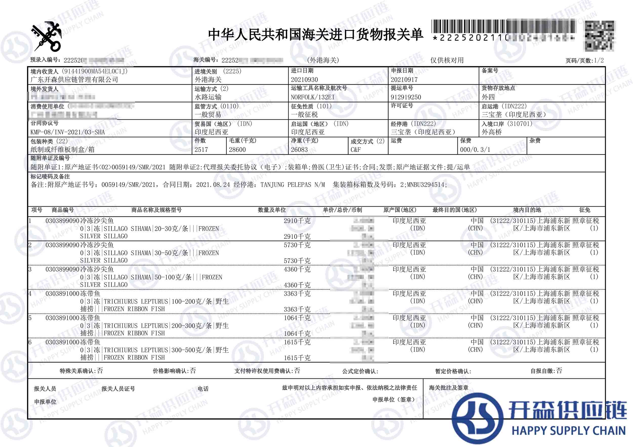 一、印度尼西亞凍帶魚進(jìn)口報(bào)關(guān)代理案例詳情