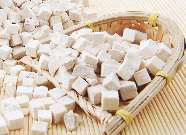2、茯苓塊:為去皮后切制的茯苓,呈立方塊狀或方塊狀厚片,大小不一。白色、淡紅色或淡棕色。